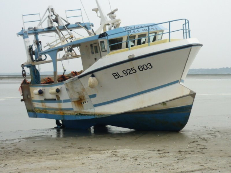 Photo en illustration : Un bâteau de pêche attend la marée haute, en Baie de Somme, Picrdie Maritime